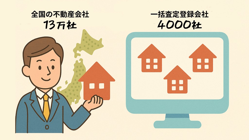 全国の不動産会社は約13万社。そのうちの2000~4000社程度が不動産一括査定サイトに登録しています。つまり、不動産一括査定サイトに登録している不動産会社は、全体のわずか2.9%に過ぎません。